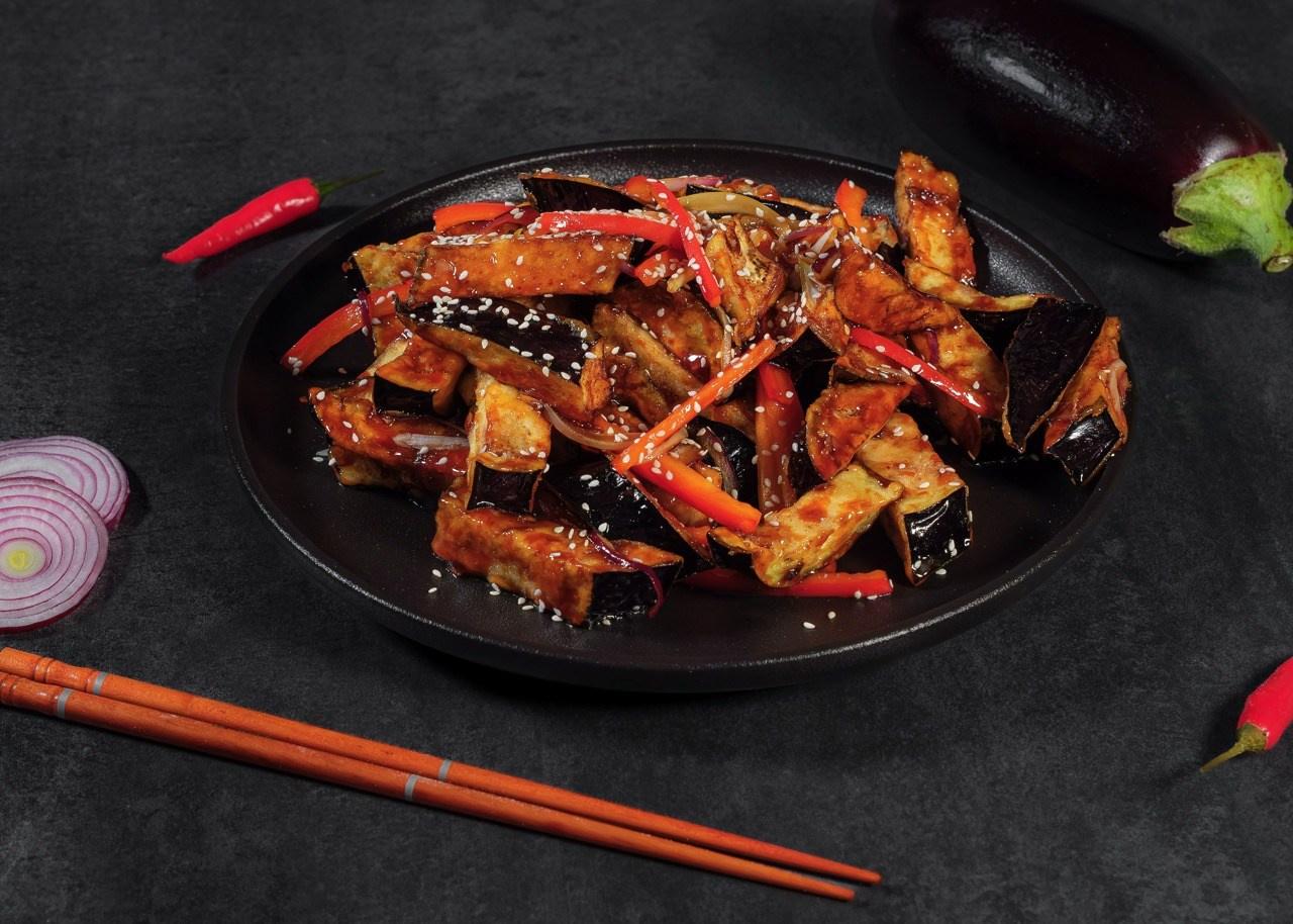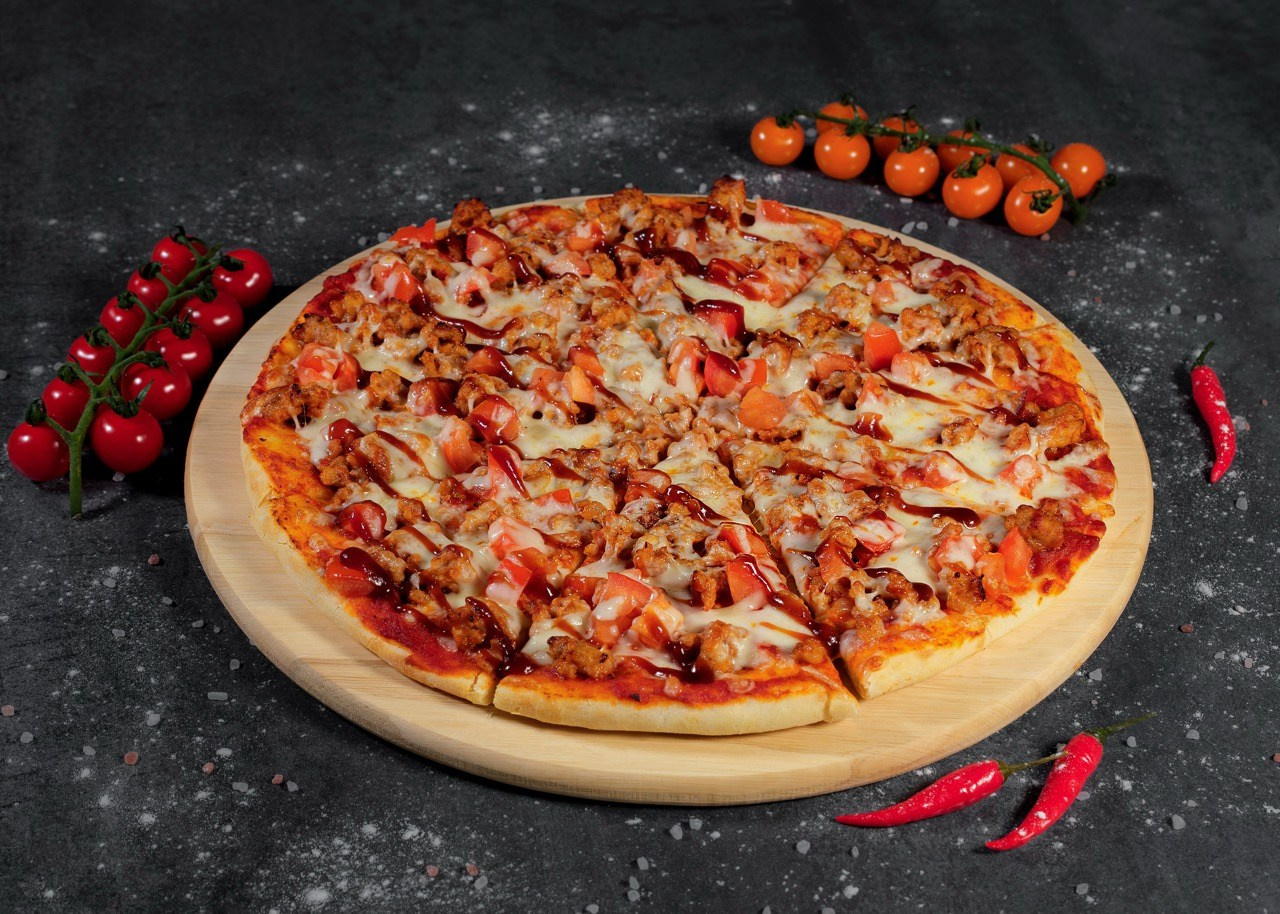 Главная проблема была в фоне — найти конкретно такую черную текстуру. Казалось бы простая задача, но на самом деле все усложнялось тем что блюда были довольно большие, а в наличии у нас были только плоские не текстурные фоны. Ввиду ограниченного времени на подготовку (3 дня) было принято решение искать подходящие варианты в стройматериалах. Нашли данную плиту которая подходила под наши задачи, согласовали с клиентом что фон будет чуть светлее и погрузили в машину